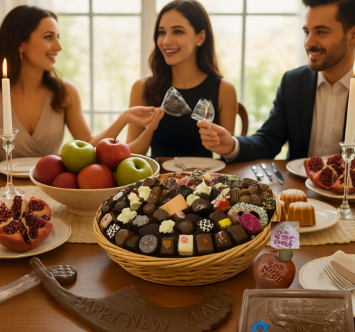 Rosh Hashana Extra Large Round Gift Basket – 99 Handcrafted Kosher Chocolates & Holiday Treats Celebrate the Jewish New Year in grand style wit...