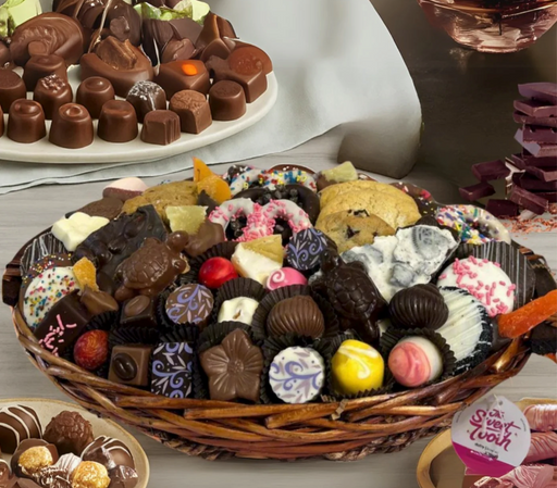 💖 Celebrate Love with Chocolate Commemorate their special day with 40 handcrafted treats in an elegantly wrapped basket. Our Anniversary Gi...