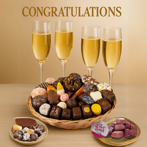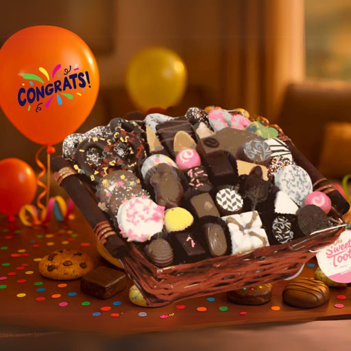 🎉 Celebrate With Chocolate! Mark their achievement with our Congratulations Gift Basket, filled with 40 handcrafted treats. Wrapped to impress an...