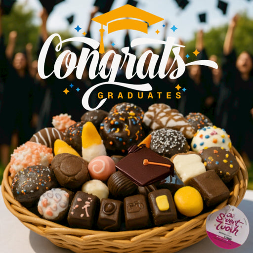 🎓 Celebrate Their Big Achievement Send your graduate off with sweet success! This festive basket includes 40 handcrafted treats wrapped with a vi...